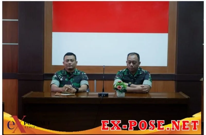 EX-POSE.NET, KARANGANYAR || Komandan Kodim 0727/Karanganyar Letkol Inf Andri Army Yudha Ardhitama, S.I.P., menyambut kedatangan Ketua Tim pengkaji hibah Letkol Inf Yohanes Heru Wibowo beserta rombongan di ruang data Makodim, Selasa 18 Oktober 2022.