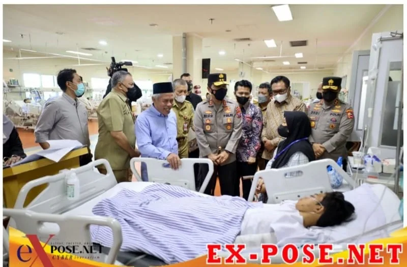 EX-POSE.NET, JAWA TIMUR || Kadiv Humas Polri bersama Kapolda Jawa Timur dan Wakil Gubernur Jawa Timur serta Ketua PWNU dengan Direktur Rumah Sakit Saiful Anwar meninjau Aremania yang sedang dirawat, pada Selasa (4/10/2022).