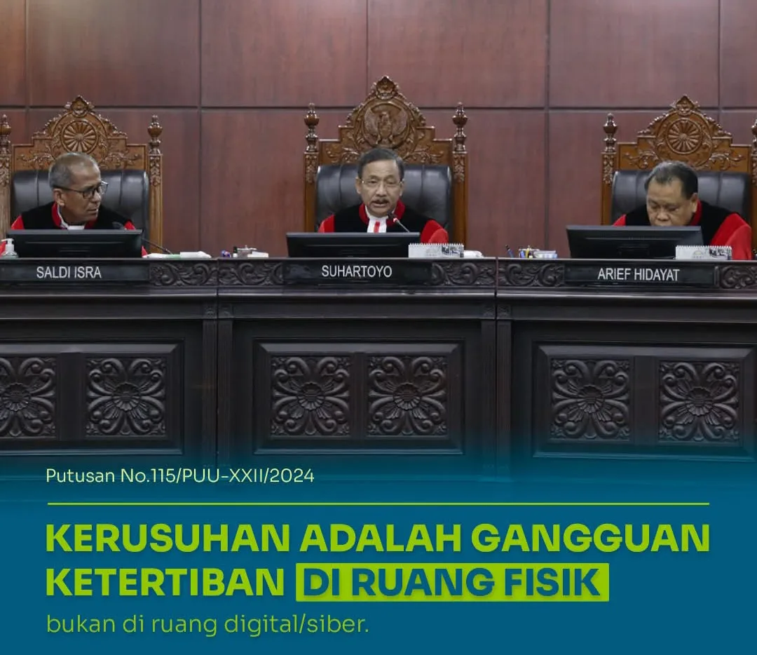 Dengan penegasan tersebut, penyampaian kritik di media sosial atau platform digital tidak serta-merta dapat dikriminalisasi atas dasar menciptakan ‘kerusuhan’, kecuali jika terbukti mengganggu ketertiban umum secara nyata di ruang fisik.
