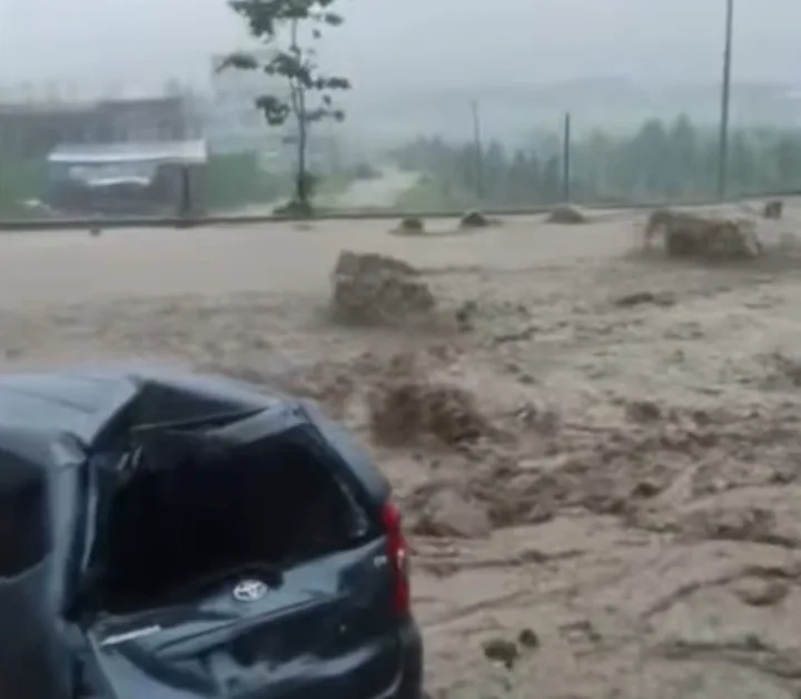 Peristiwa itu terekam video warga dan viral di media sosial. Dalam rekaman, tampak sebuah mobil terseret arus air berwarna cokelat dengan deras di tengah jalan.