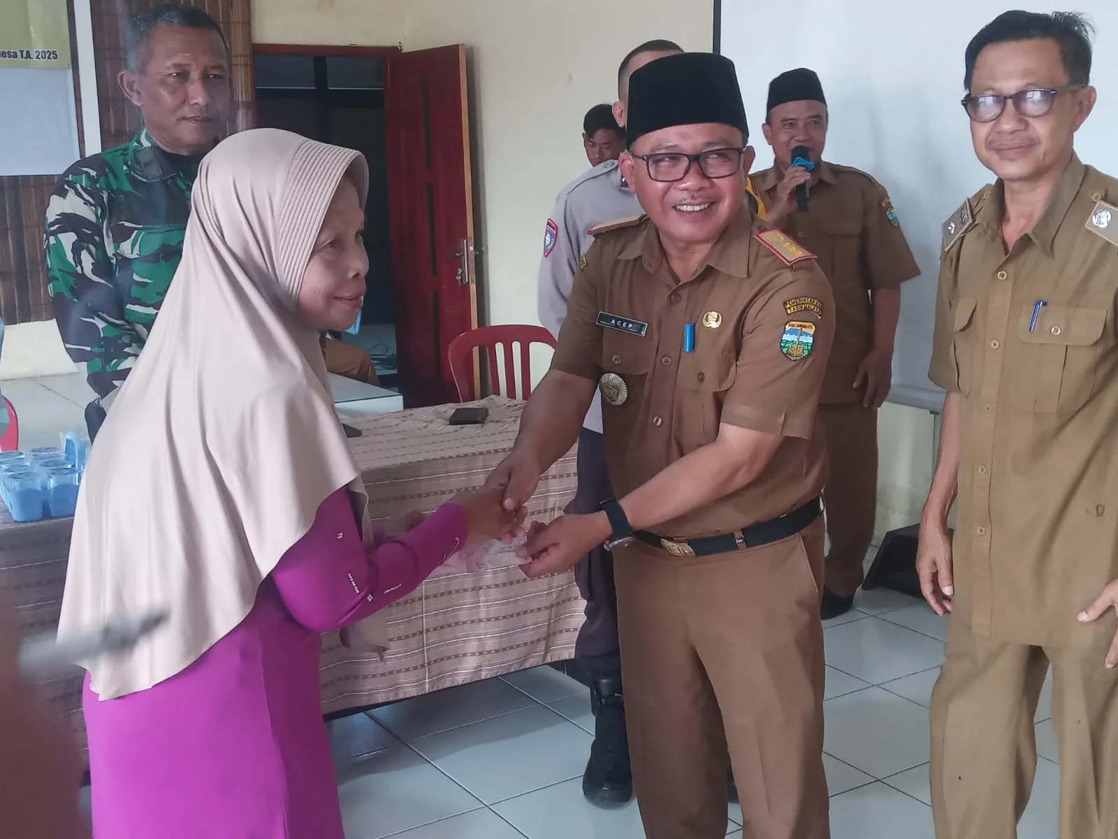 Penyerahan BLT dilakukan secara simbolis oleh Camat dan Kepala Desa kepada beberapa KPM. Adapun besaran bantuan yang diterima masing-masing KPM yakni Rp 900 ribu untuk periode Oktober, November, dan Desember.