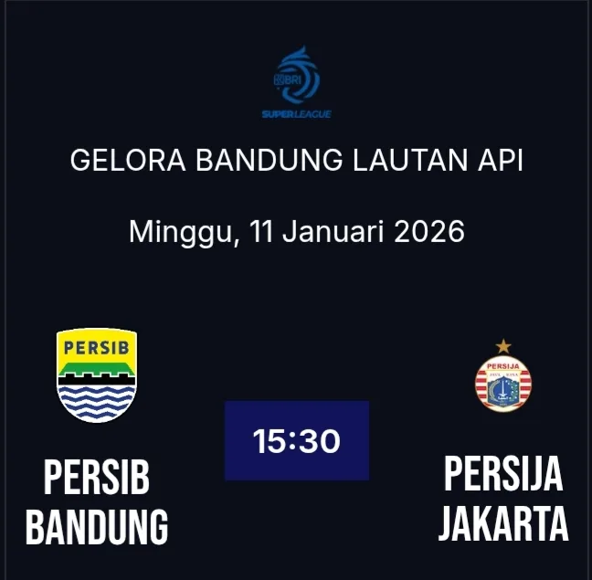 Ex-Pose.net, BANDUNG — Laga bertajuk El Clasico Indonesia kembali tersaji pada pekan ke-17 BRI Super League 2025–2026. Persib Bandung dijadwalkan menjamu Persija Jakarta dalam pertandingan penutup putaran pertama yang akan berlangsung di Stadion Gelora Bandung Lautan Api (GBLA), Minggu (11/1), pukul 15.30 WIB.