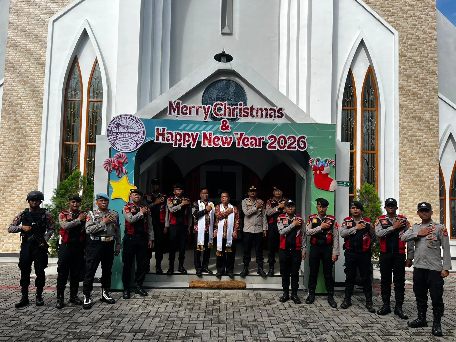 Garut – Dalam rangka menjaga keamanan dan kenyamanan masyarakat selama perayaan Natal 2025 dan Tahun Baru 2026, Satuan Samapta Polres Garut melaksanakan kegiatan preventif di tempat ibadah Gereja Kristen Pasundan, Minggu (28/12/2025).