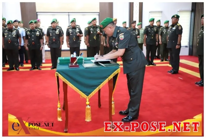 EX-POSE.NET, MEDAN || Panglima Komando Daerah Militer I Bukit Barisan Mayjen TNI Achmad Daniel Chardin SE MSi, memimpin acara Serah Terima Jabatan 10 Pejabat Utama Kodam I/BB dan Tradisi Korps di Aula A.H. Nasution, Makodam I/BB, Selasa (11/10/2022).