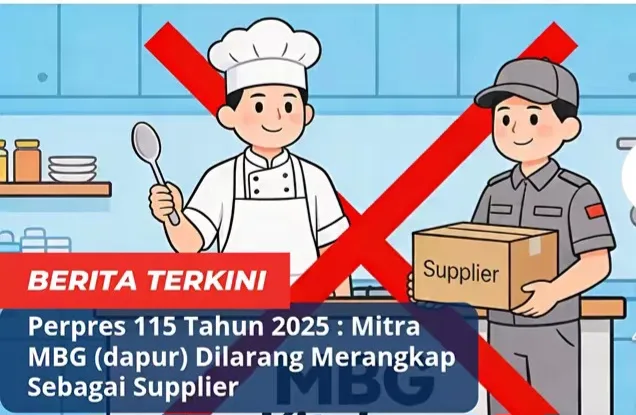 Pemerintah menetapkan aturan tegas dalam operasional dapur program Makan Bergizi Gratis (MBG). Melalui Peraturan Presiden (Perpres) Nomor 115 Tahun 2025, mitra MBG yang mengelola dapur secara resmi dilarang merangkap peran sebagai supplier bahan makanan.