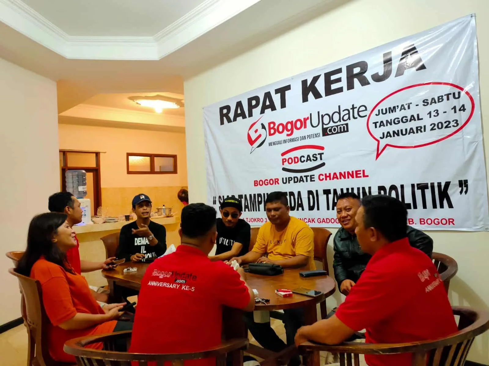 Tampak hadir jajaran redaksi Bogor Update saat Raker, di mana semua memberikan masukan penting. Di antaranya, Effendi Tobing, Dedy Firdaus, Nurcholis Fardillah, Reza, Ajis Maulana, Rieke Ferra Rotinsulu, Agus Chandra.