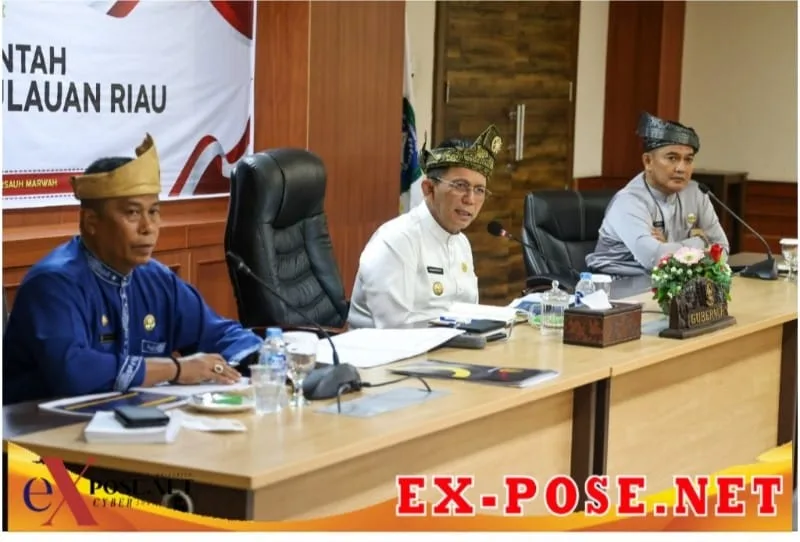 EX-POSE.NET, KEPRI || Gubernur Kepulauan Riau H. Ansar Ahmad memimpin rapat evaluasi kinerja terkait pelaksanaan kegiatan pembangunan tahun anggaran 2022 bersama seluruh jajaran kepala Organisasi Perangkat Daerah (OPD) di lingkungan Pemerintah Provinsi Kepulauan Riau di Ruang Rapat Utama, Lt.4, Kantor Gubernur, Dompak, Tanjungpinang, Senin (19/09).