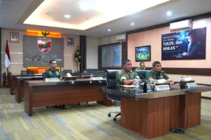 Makassar – Pangdam XIV/Hasanuddin Mayjen TNI Bangun Nawoko didampingi Kasdam Brigjen TNI Sugeng Hartono, S.E., M.M., dan sejumlah Pejabat Utama (PJU) Kodam mengikuti pengarahan Wakil Panglima TNI Jenderal TNI Tandyo Budi R., melalui video conference (Vicon), bertempat di Ruang Vicon Puskodalops, Makodam, Jl. Urip Sumoharjo, Kota Makassar. Rabu, (05/11/2025).