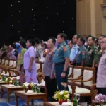 Disamping Presiden RI ke-5, hadiri juga Kapolri Jenderal Pol Listyo Sigit Prabowo, Mensos Tri Rismaharini, Menteri PPPA I Gusti Ayu Bintang Darmawati, Menpan-RB Azwar Anas, Menkes Budi Gunadi, Kepala BPIP Yudian Wahyudi Kepala BKKBN Hasto Wardojo, Kepala BRIN Laksana Tri Handoko, Kepala BMKG Dwikorita serta seluruh hadirin lainnya. (Puspen TNI).